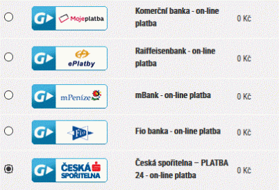 Při volbě platby vyberete banku, u které je veden váš účet, a následně budete přesměrováni přímo na přihlašovací stránku internetového bankovnictví.