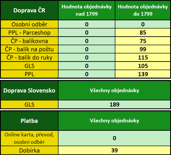 - možnost inkasa dobírky v hotovosti nebo platební kartou