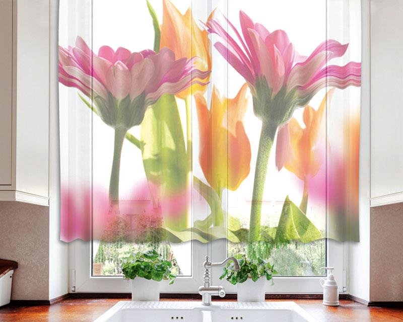 Textilní foto záclona Jarní květiny v rozměru 140 cm x 120 cm perfektní doplněk do vašeho intrieru.