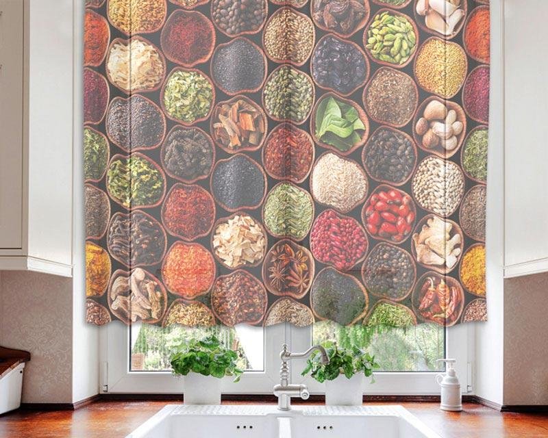 Textilní foto záclona s motivem Misek s kořením v rozměru 140 cm x 120 cm skvěle doladí váš interier.