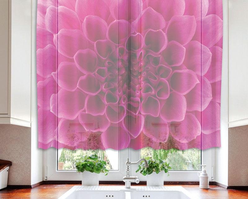 Textilní foto záclona s motivem Růžové jiřiny v rozměru 140 cm x 120 cm.