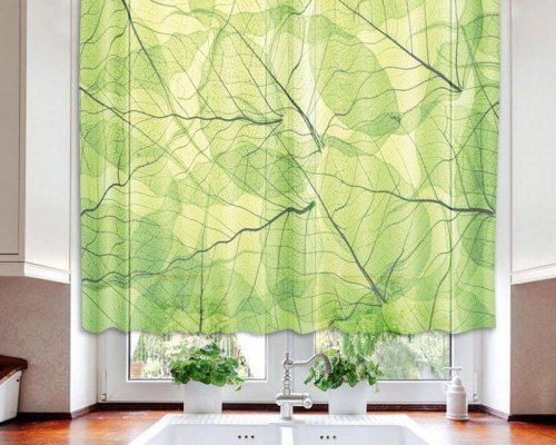 Textilní foto záclona s motivem Žilek zelených listů v rozměru 140 cm x 120 cm skvěle doladí váš interier.