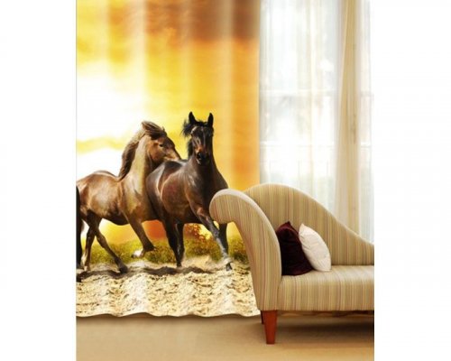 Krásný fotozávěs s Konmi při západu slunce. Závěs s fototiskem má rozměr 140 x245 cm. Je vhodný do každé místnosti.