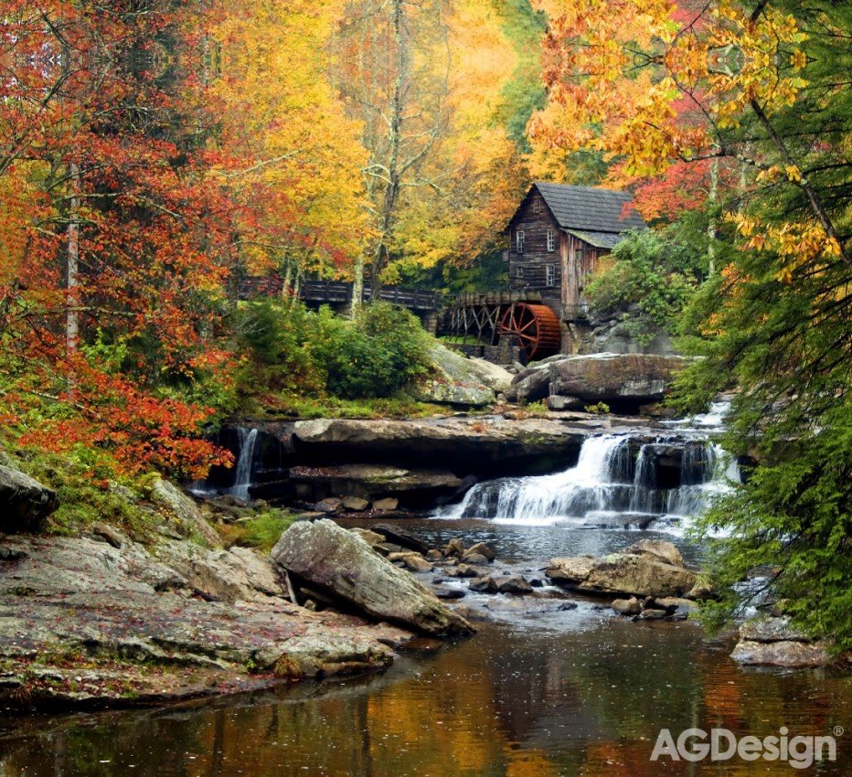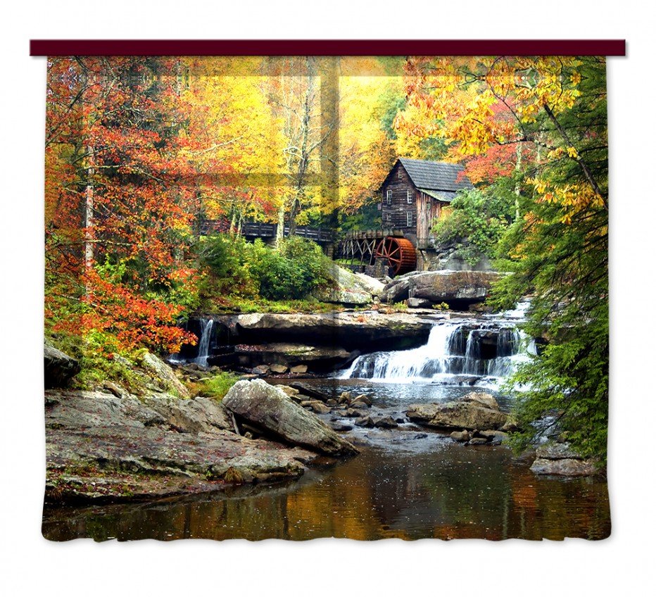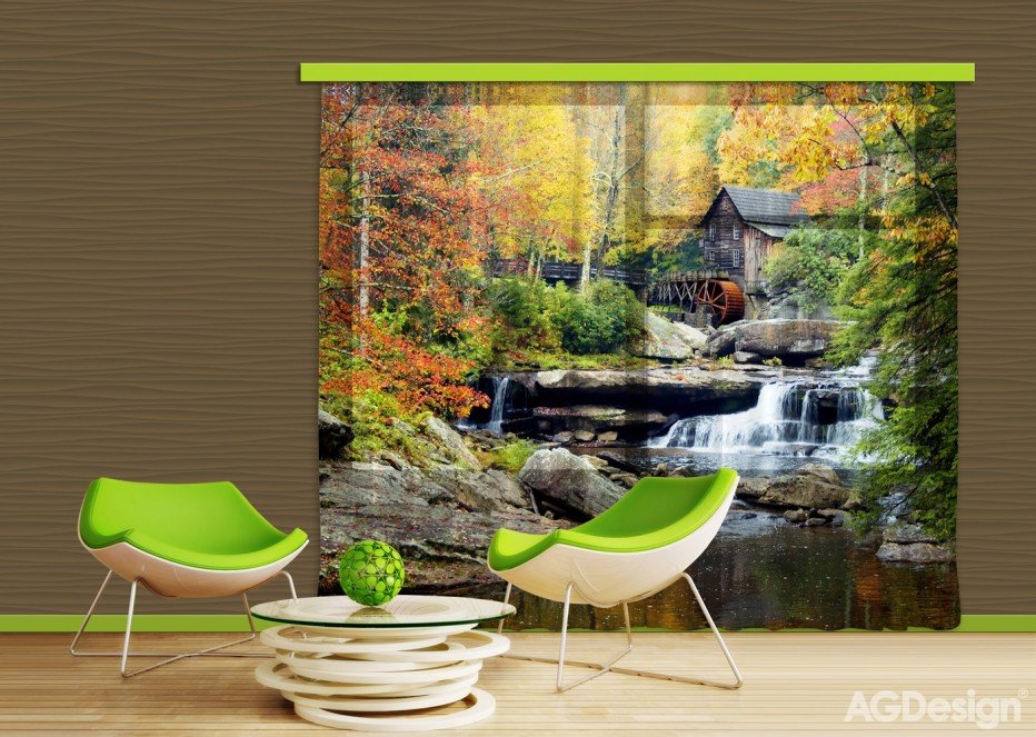 Fotozávěs les, vodopád, mlýn FCSXXL 7402 z kolekce AG Design - foto-závěs s potiskem FCSXXL7402