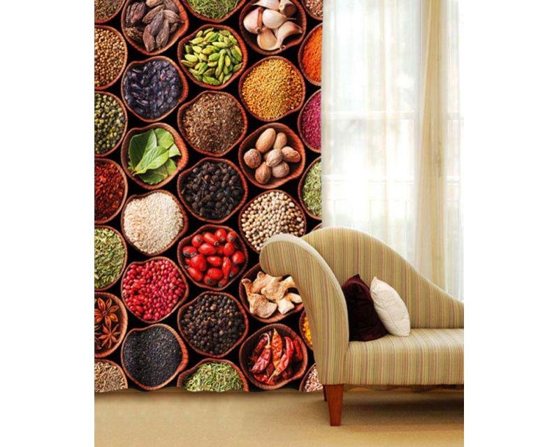 Zapomeňte na nudné vzory závěsů. S těmito fotozávěsy rozhodně nuda nebude. Závěs s fototiskem Misek s kořením má rozměr 140 x245 cm. Je vhodný především do kuchyně.