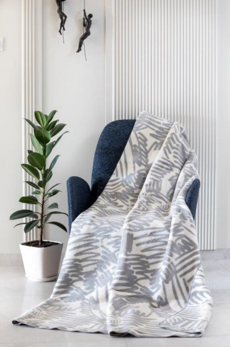 Bavlněná deka, šedá, bílá, abstraktní, geometrický vzor