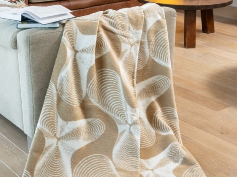 Bavlněná deka, kombinace béžové a bílé barvy, moderní abstraktní, geometrický motiv
