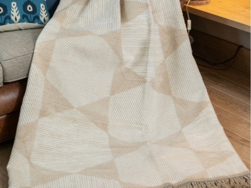 Bavlněná deka, kombinace béžové a krémové barvy, moderní geometrický motiv, hexagon - šestiúhelníky