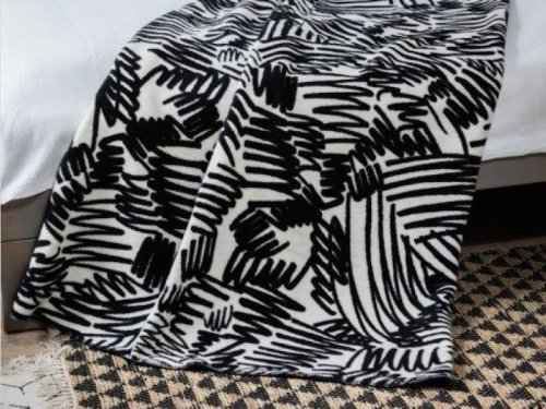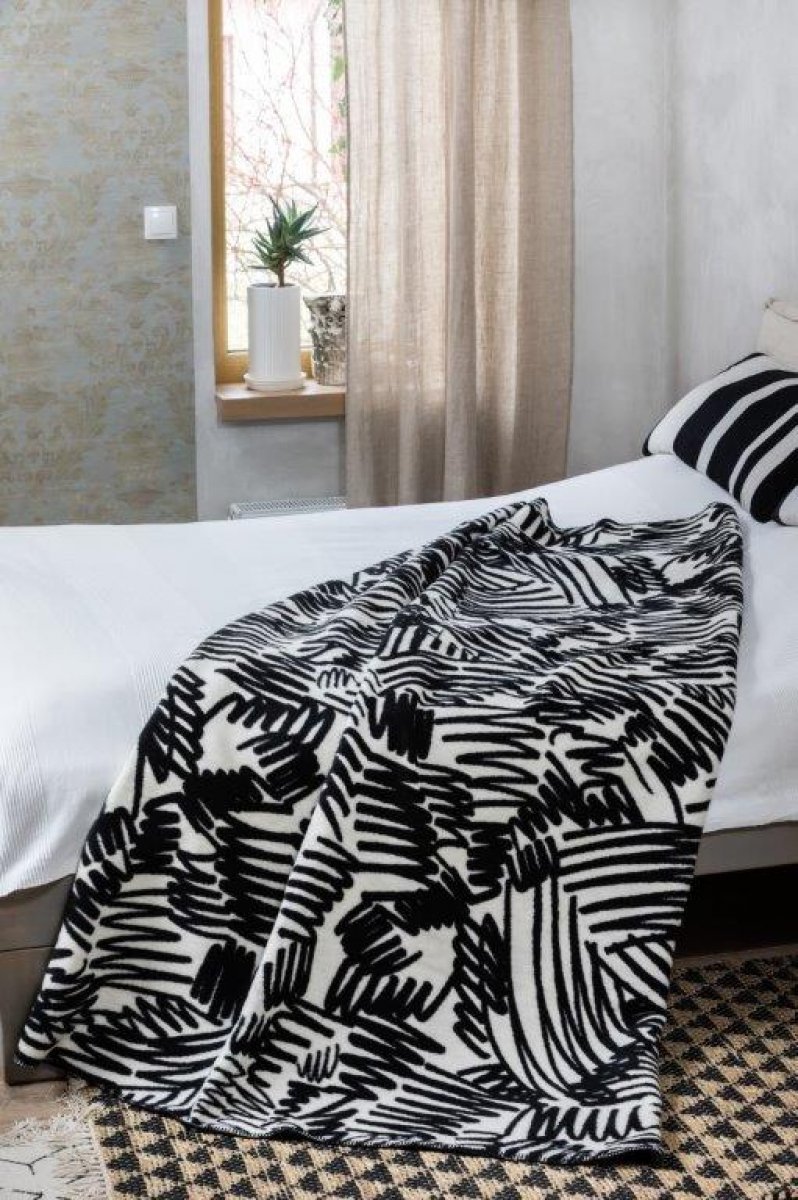 Bavlněná deka, černá, bílá, abstraktní, geometrický vzor