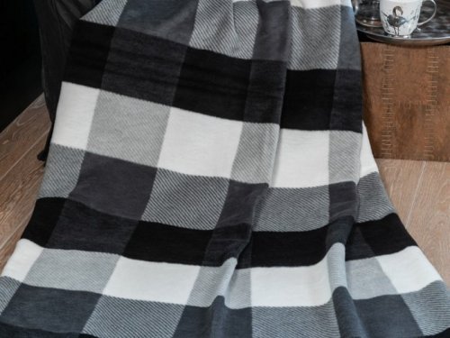 Bavlněná deka, kombinace černé, šedé a bílé barvy, moderní káro vzor, kostky, geometrický motiv