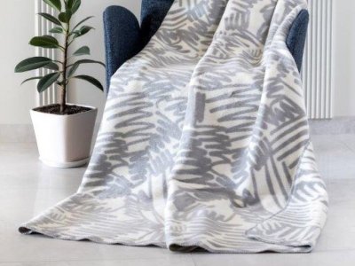 Bavlněná deka, šedá, abstraktní geometrický vzor