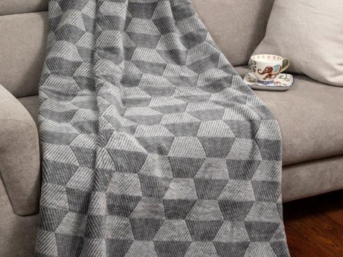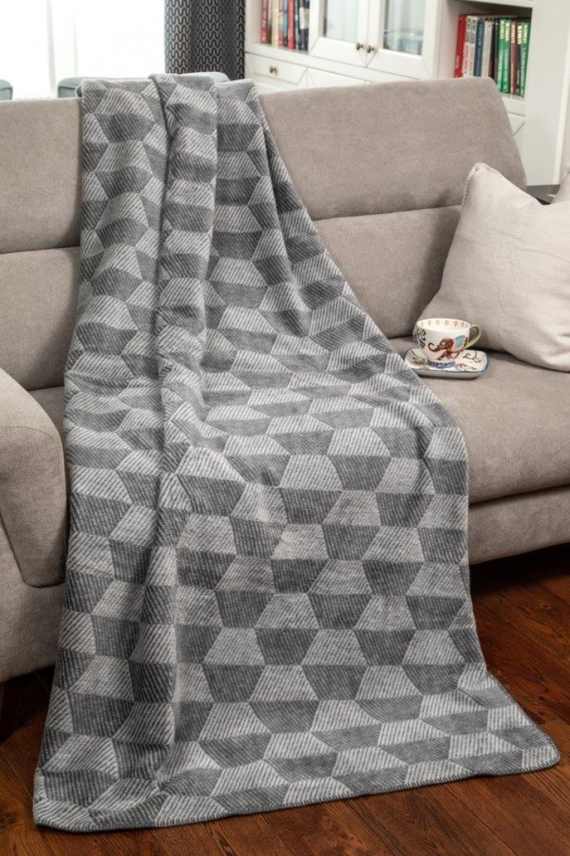 Bavlněná deka, kombinace šedé ve více odstínech, moderní geometrický motiv